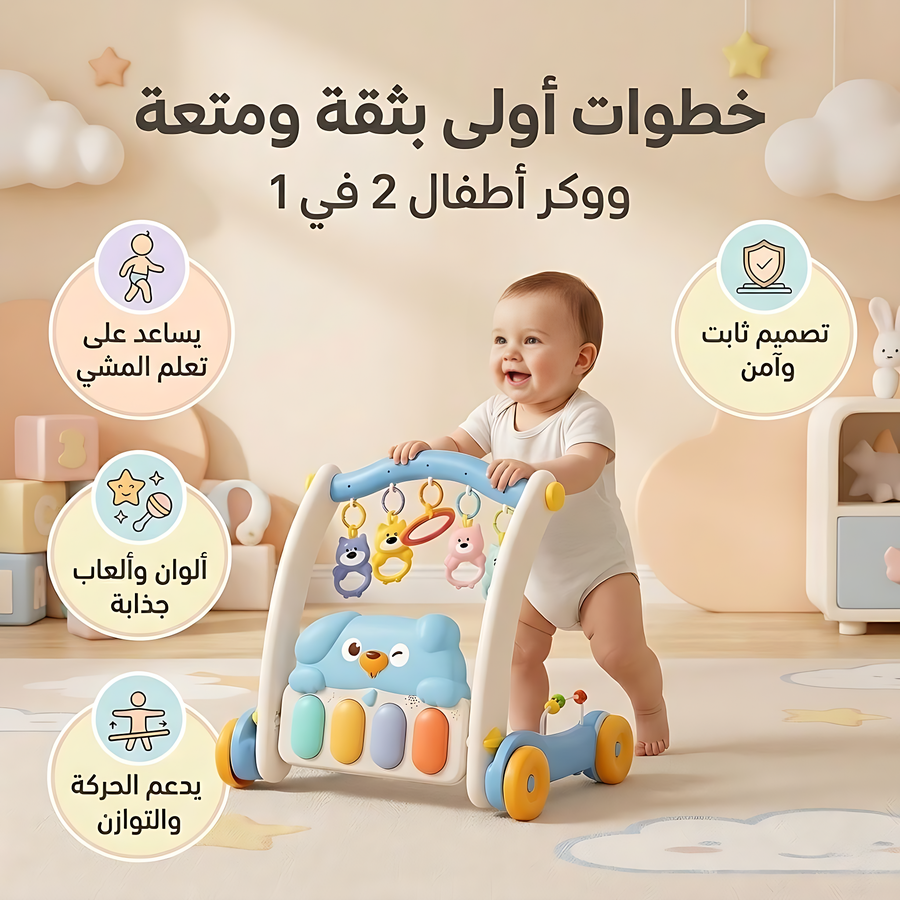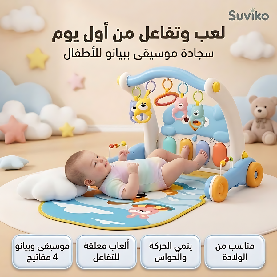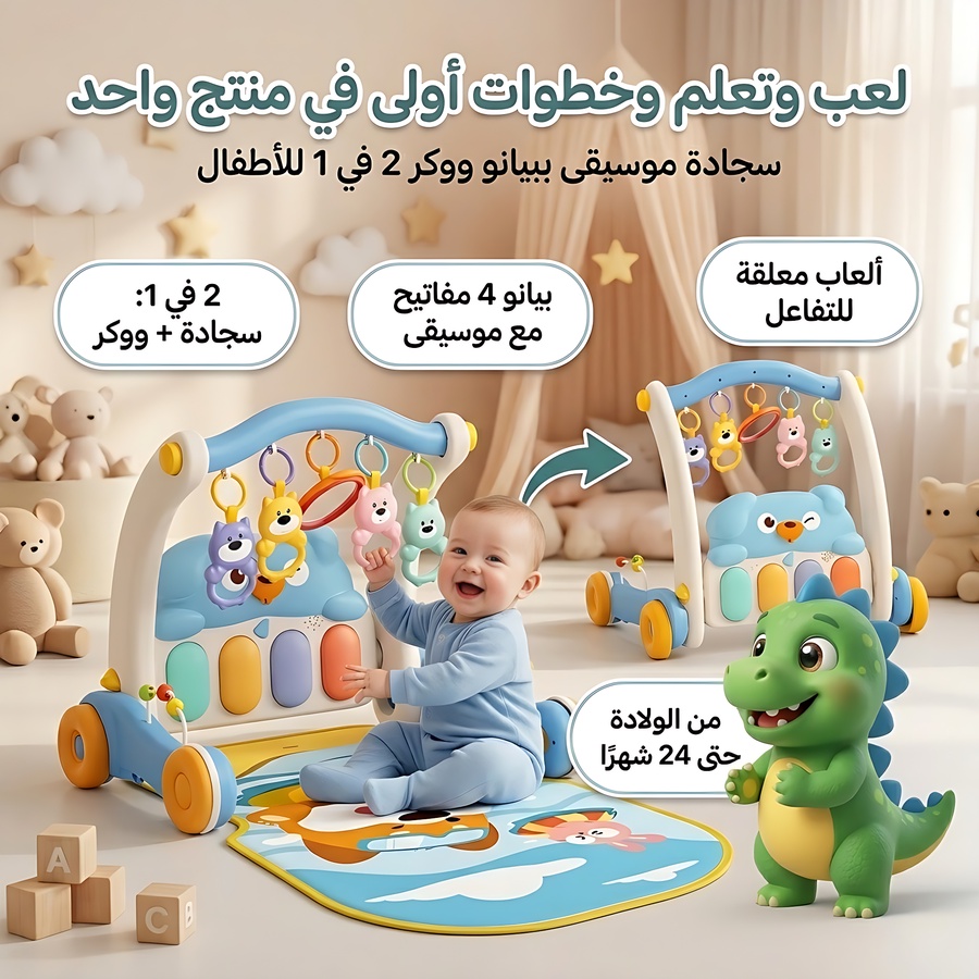 سجادة موسيقى ببيانو ووكر 2 في 1 للأطفال هي لعبة ذكية تجمع بين التسلية، التعليم، والحركة في منتج واحد. الطفل يقدر يستمتع بسجادة موسيقى مزودة بـ بيانو 4 مفاتيح، إضاءة، وألعاب معلقة تساعده على التفاعل والحركة من أول الشهور، وفي نفس الوقت تتحول إلى ووكر تساعده على أخذ خطواته الأولى بثقة ومتعة.