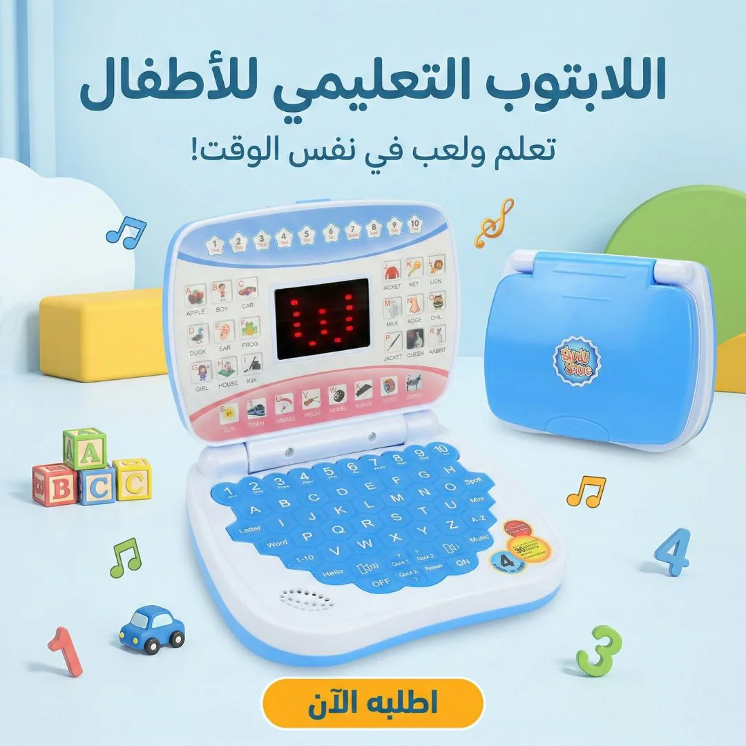 اللابتوب ده فيه كل حاجة الطفل محتاجها علشان يتعلم الحروف، الأرقام، الكلمات، وكمان الأغاني التعليمية بطريقة ممتعة وسهلة 👏