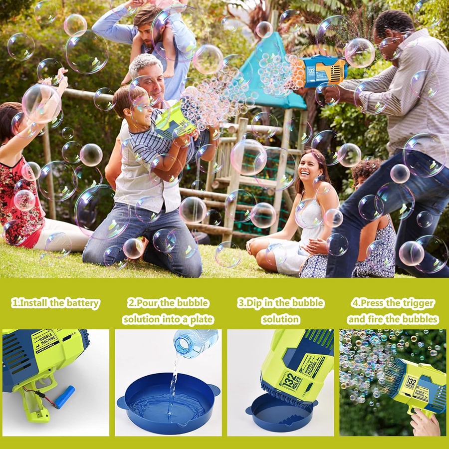 مدفع الفقاعات العملاق 132 فتحة للأطفال مع بطارية قابلة للشحن، يطلق مئات الفقاعات بسرعة، لعبة ترفيهية رائعة للحفلات والحدائق والمناسبات.